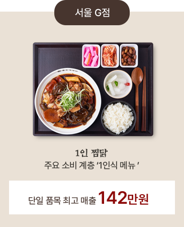 1인 찜닭, 닭갈비, 삼계탕, 초계냉면까지 세분화된 전략의 메뉴 라인 확대가 가능합니다.